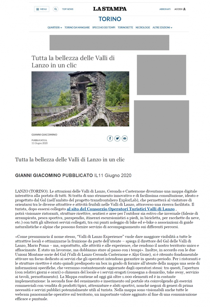 La Stampa on line| Le attrazioni delle Valli di Lanzo, Ceronda e Casternone in una mappa digitale