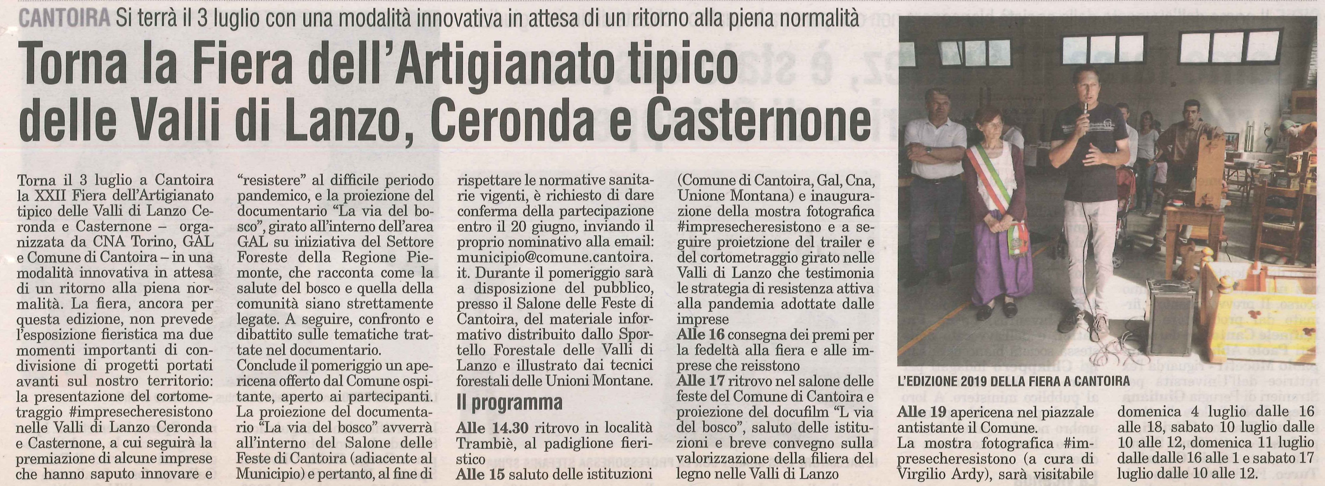 La Voce |Fiera dell'Artigianato tipico appuntamento sabato 3 luglio a Cantoira.