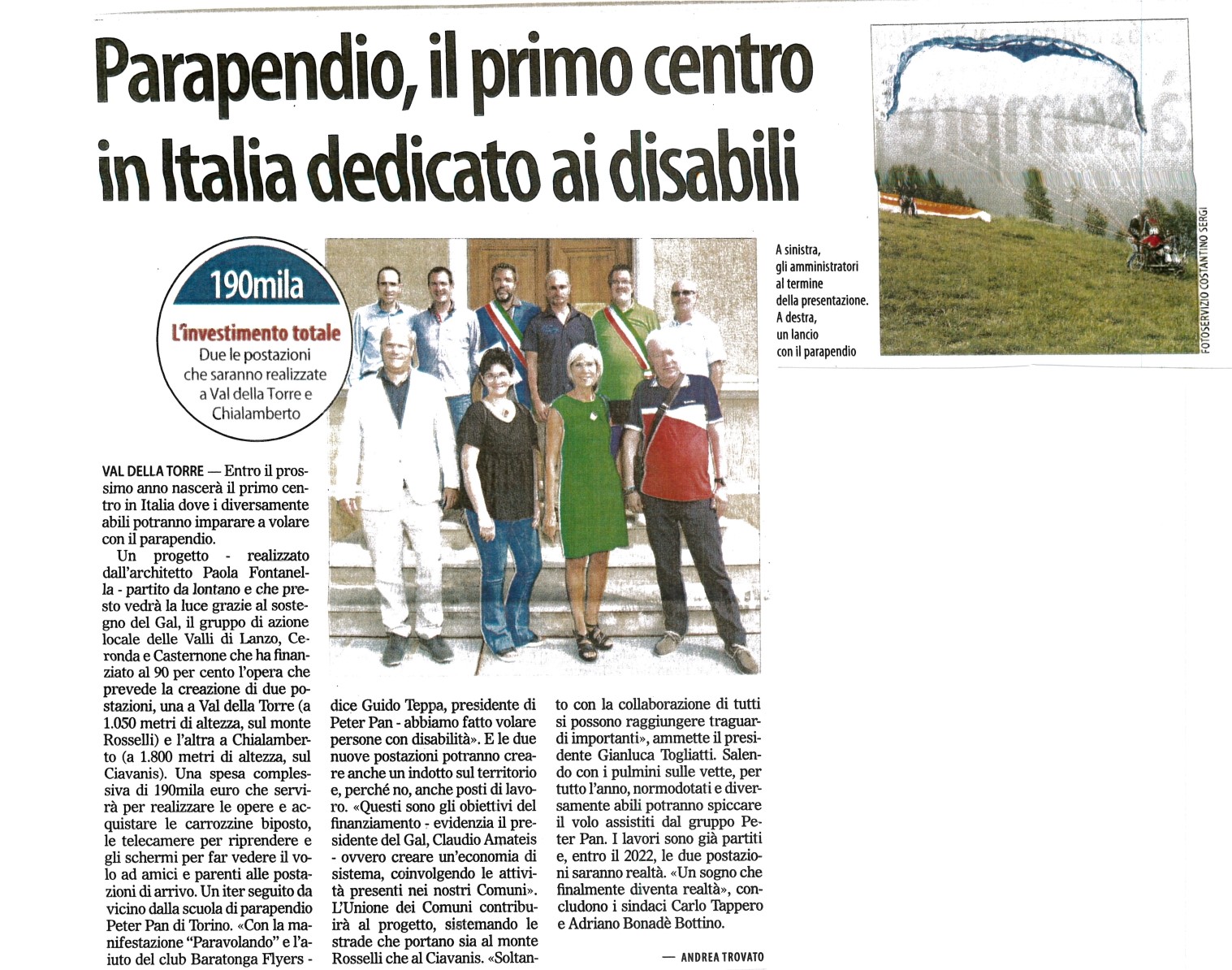 Il Risveglio| Parapendio: un progetto che vedrà la luce grazie al sostegno del GAL Valli di Lanzo , Ceronda e Casternone.